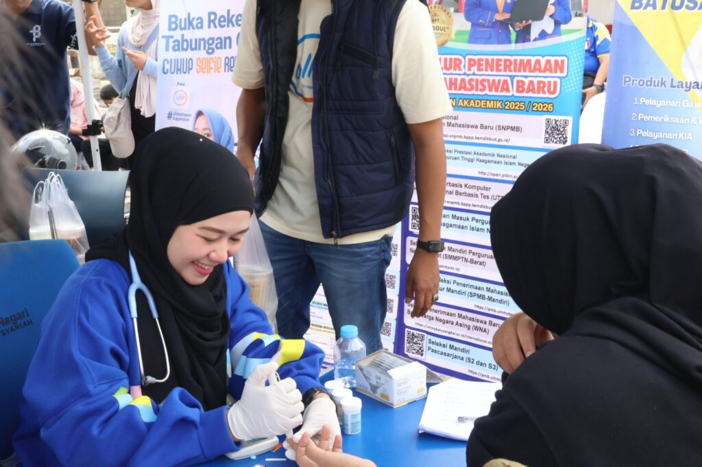 Batusangkar-Dalam rangka mendukung gaya hidup sehat dan meningkatkan kesadaran masyarakat akan pentingnya menjaga kesehatan, Klinik UIN Mahmud Yunus Batusangkar bekerja sama dengan Ollin Bank Nagari menyelenggarakan pemeriksaan kesehatan gratis di arena Car Free Day Lapangan Cindua Mato Batusangkar, pada Minggu, 29 Juni 2025.