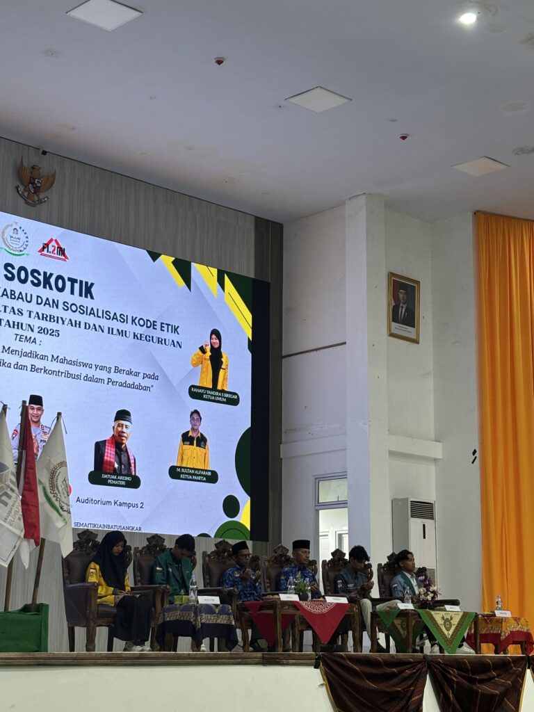 Batusangkar – Fakultas Tarbiyah dan Ilmu Keguruan (FTIK) Universitas Islam Negeri (UIN) Mahmud Yunus Batusangkar melalui Senat Mahasiswa Fakultas (SEMA-F) sukses menyelenggarakan kegiatan Budaya Alam Minangkabau (BAM) dan Sosialisasi Kode Etik (SOSKOTIK) 2025, rabu (17/9/25). Acara yang berlangsung di Auditorium Kampus II ini mengusung tema“Melalui BAM & SOSKOTIK Menjadikan Mahasiswa yang Berakar pada Adat, Bertumbuh dengan Etika, dan Berkontribusi dalam Peradaban.”
