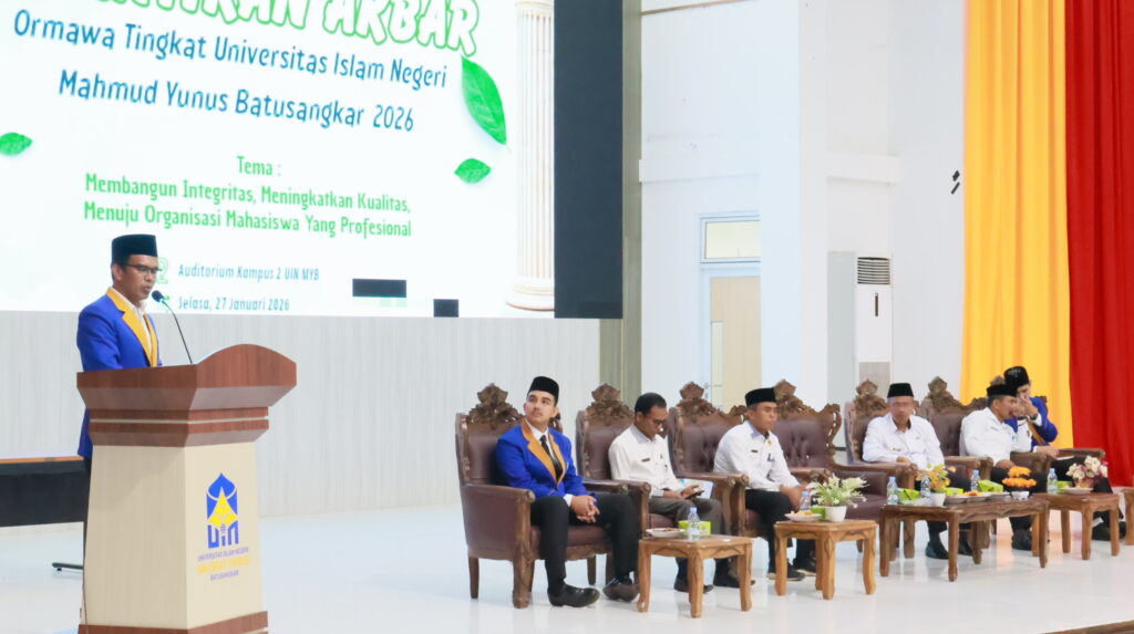 Batusangkar — Rektor Universitas Islam Negeri (UIN) Mahmud Yunus Batusangkar, Prof. Delmus Puneri Salim, S.Ag., M.A., M.Res., Ph.D., secara resmi melantik Pengurus Organisasi Kemahasiswaan (Ormawa) UIN Mahmud Yunus Batusangkar periode 2026, Selasa (27/01/2026) di Auditorium Kampus II. Pelantikan ini meliputi 21 organisasi kemahasiswaan yang terdiri dari Dewan Mahasiswa (DEMA), Senat Mahasiswa (SEMA), Unit Kegiatan Khusus (UKK), dan Unit Kegiatan Mahasiswa (UKM).