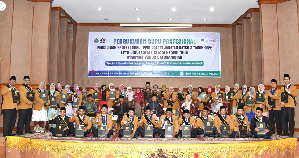 Batusangkar (Humas) – Universitas Islam Negeri (UIN) Mahmud Yunus Batusangkar mengukuhkan sebanyak 84 orang Guru Profesional lewat Program Studi Pendidikan Profesi Guru (PPG) Dalam Jabatan Batch 3 Tahun 2022.