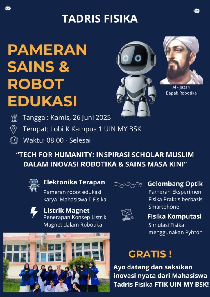 Mengusung tema “Tech for Humanity: Inspirasi Scholar Muslim dalam Inovasi Robotika & Sains Masa Kini,” kegiatan ini tidak sekadar menjadi ajang pameran, tapi juga wujud nyata semangat mahasiswa dalam menyatukan iman dan ilmu pengetahuan dalam kehidupan nyata. Dalam pameran yang terbuka gratis untuk seluruh civitas akademika dan masyarakat umum ini, pengunjung disuguhkan karya-karya kreatif seperti: