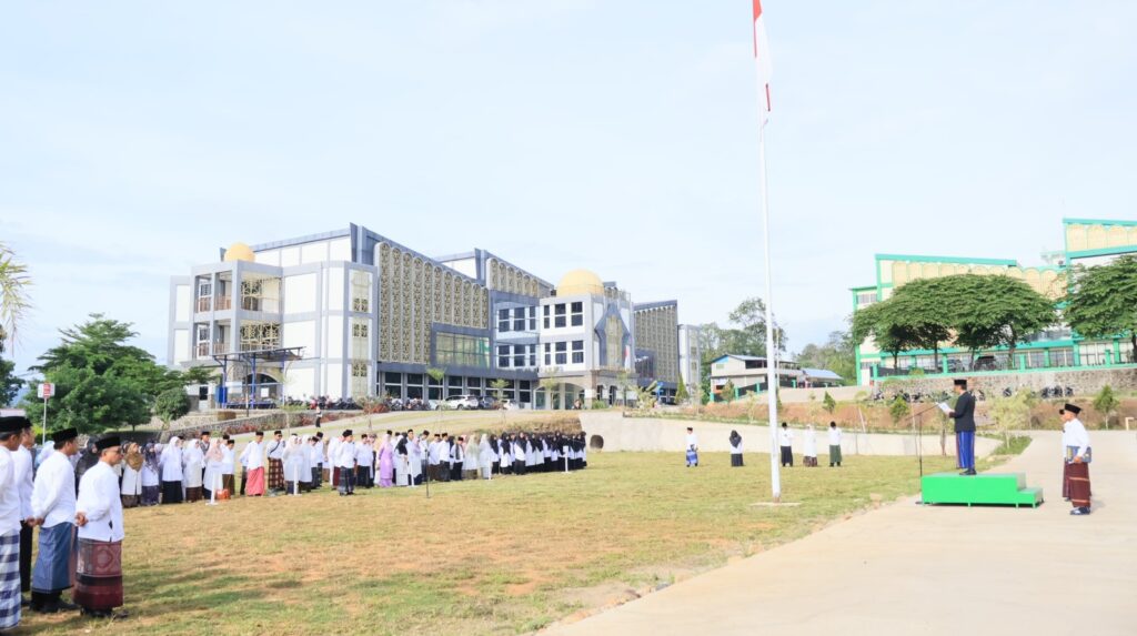 Bendera Merah Putih dikibarkan dengan lantunan penuh hormat, dilanjutkan lagu mars Santri dan doa bersama untuk para ulama, pahlawan, serta santri yang telah berjuang demi agama dan bangsa.