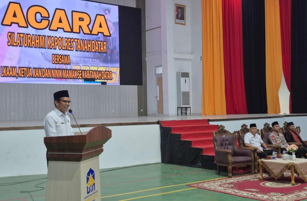 Batusangkar — UIN Mahmud Yunus Batusangkar menjadi lokasi pelaksanaan kegiatan silaturahmi yang diselenggarakan oleh Polres Tanah Datar bersama Lembaga Kerapatan Adat Alam Minangkabau (LKAAM), Ketua Kerapatan Adat Nagari (KAN), serta Ninik Mamak se-Kabupaten Tanah Datar.