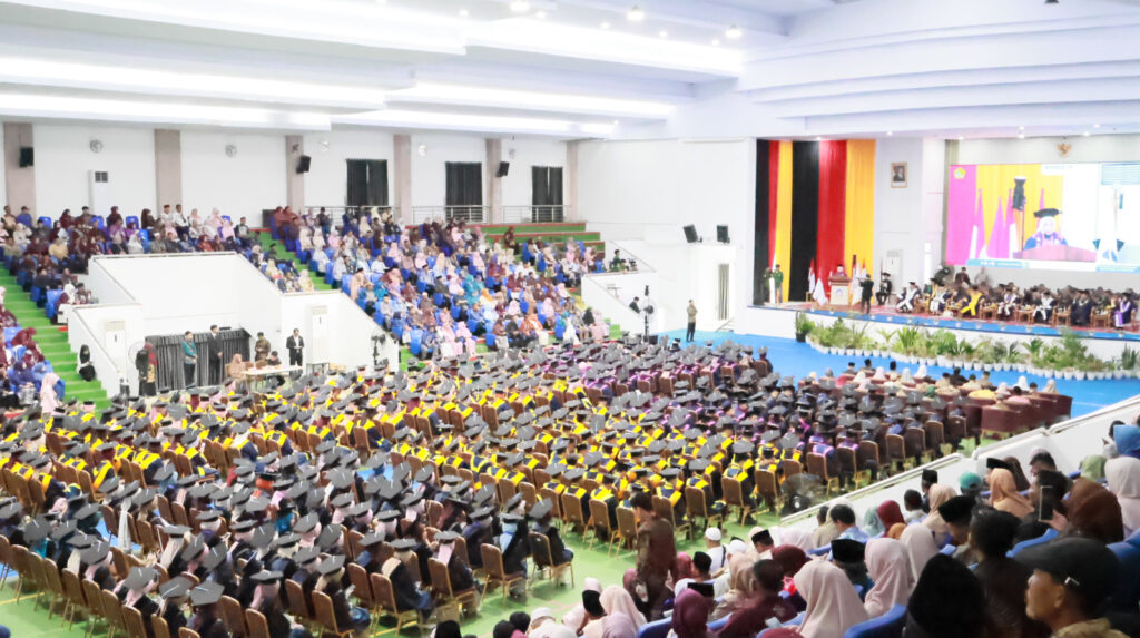 Prosesi wisuda diawali dengan arak-arakan Senat dan tamu undangan menuju auditorium, dilanjutkan dengan pembukaan oleh MC, pembacaan ayat suci Al-Qur’an, dan doa. Suasana sakral dan penuh kebanggaan terasa kuat saat para wisudawan bersama keluarga mengikuti setiap rangkaian acara.