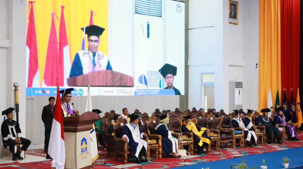 Selain itu, Rektor menegaskan bahwa gelar yang diraih hari ini adalah amanah yang harus dijaga dan dimanfaatkan untuk memberi manfaat bagi masyarakat.
